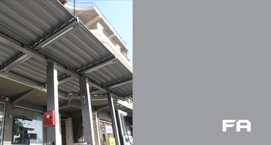 Stable or open-closed waterproof shading system, combination of single steel skin and lexan. Option of inox.