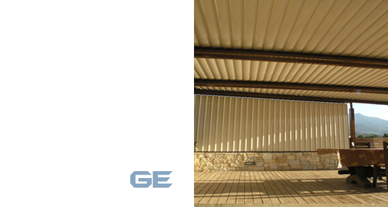 Light transmittance when system is opened 0%. AL.ROLL Pergola by Glazetech is a sliding aluminum waterproof shading system. Its louvres consists of double aluminum layer for insulation and offers light or shade, waterproofing and full ventilation. AL.ROLL Pergola is collected and results in a roll (storage box) of dimensions 50x50cm. Light transmittance when system is opened 0% and when system is closed 100%. Easy installation. Needs a minimum inclination of 1%. Maximum system dimensions 3x6m. (Maximum louvers length between 2 gutters is 3m. Maximum louvers width between storage box and ending-hem of the construction is 6m.)